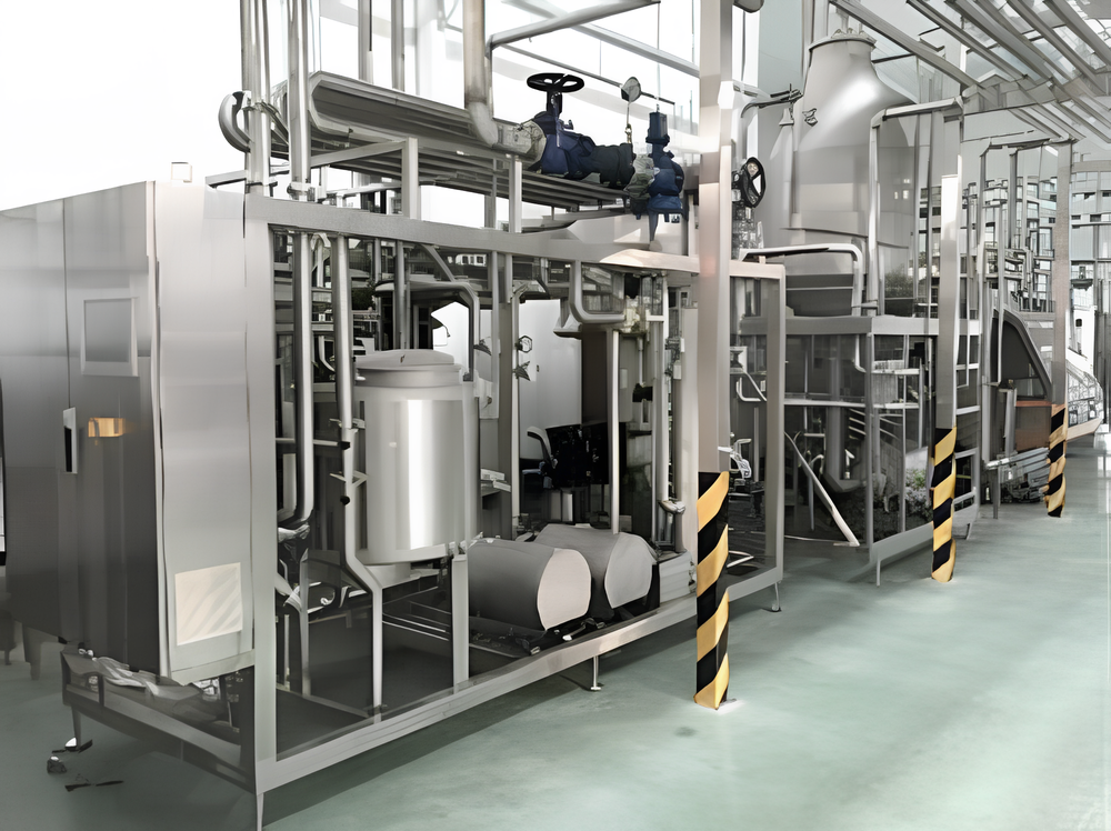 Высокотемпературный пастеризатор: вход при 5℃ → нагрев и гомогенизация при 65℃ → пастеризация при125℃ в течение 5 сек → охлаждение и выход при 5℃