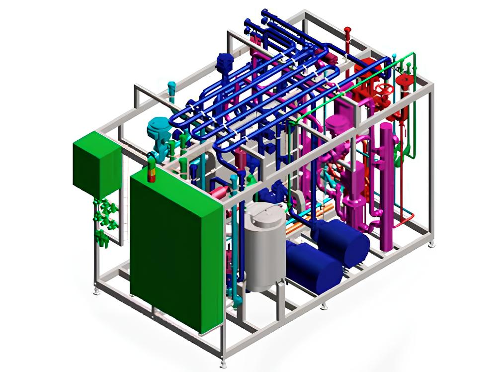 Пастеризатор молока: вход при 5℃ → нагрев и гомогенизация при 65℃ → пастеризация при 85℃ в течение 15 сек → охлаждение и выход при 5℃